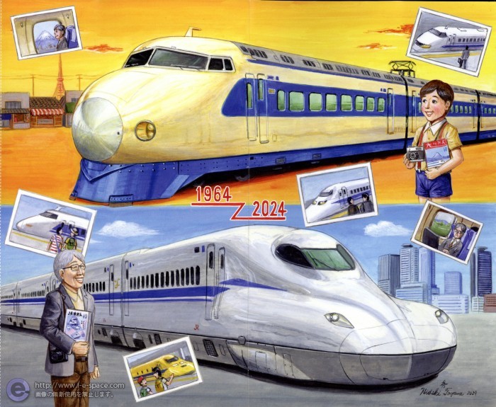 田川 秀樹 時刻表2024年10月号ポスター 時刻表2024年10月号(交通新聞社)の特別付録ポスターに使用された、新幹線のイラストです。 このイラストが入っているカテゴリー 橙, 電車・汽車, 子供, 絵本, 空色, 手描き, 高齢者, リアル, 水彩画, レトロ このイラストに含まれるタグ 新幹線, 電車, レトロイラスト, 昭和レトロイラスト